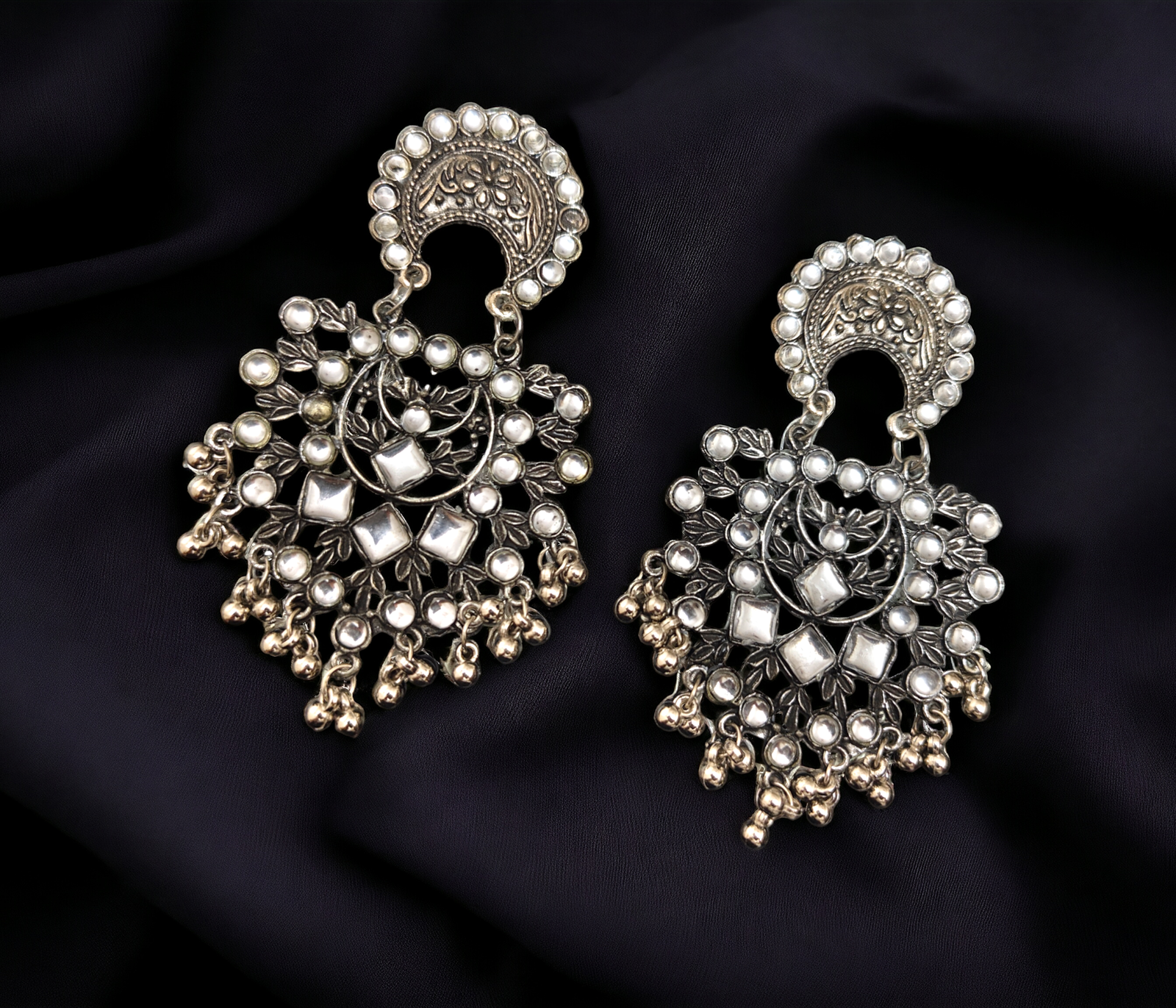 Detailed damask pattern oxidized earrings?classic Indo-western look.